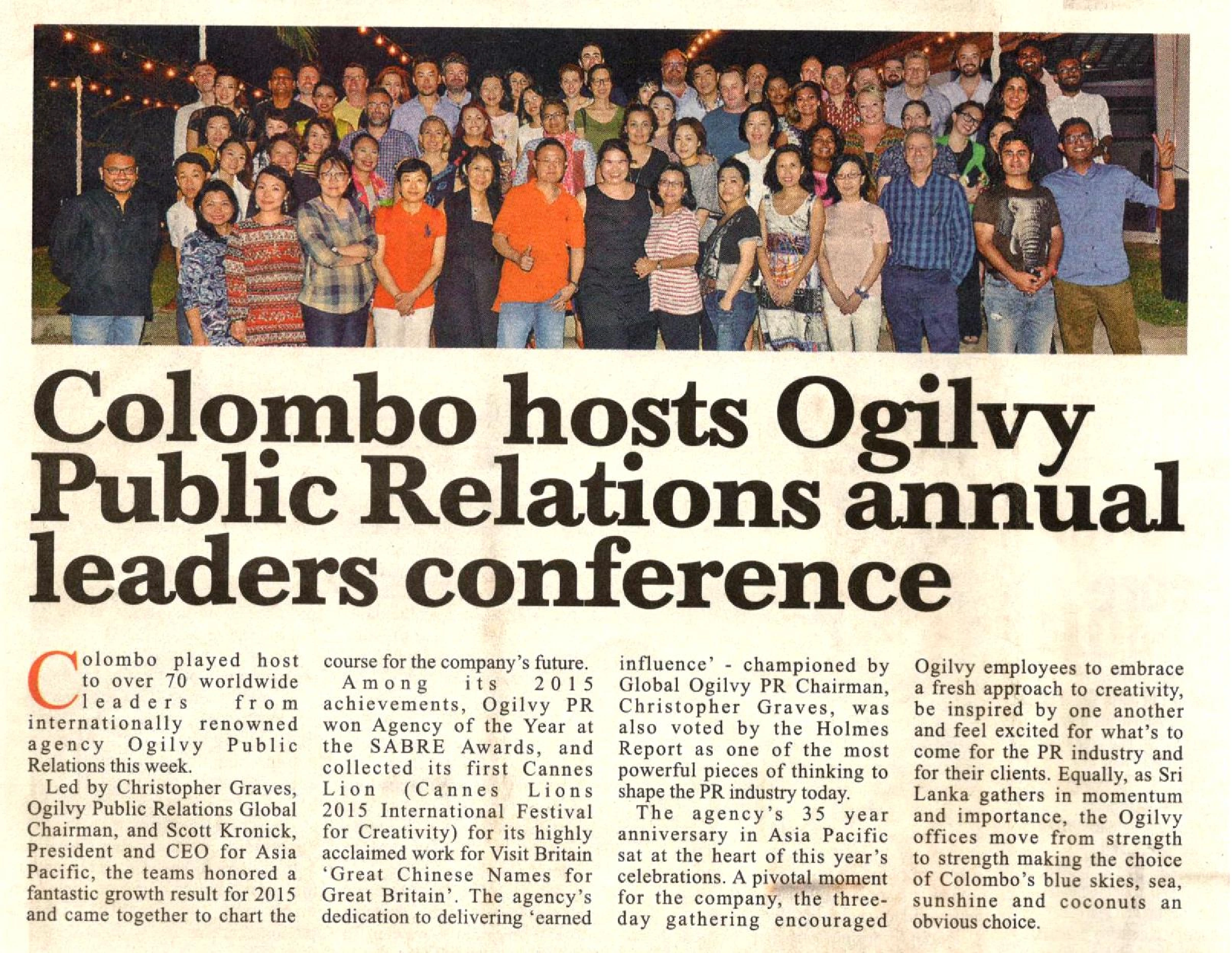 Colombo hosts Ogilvy PR Annual Leaders Conference
